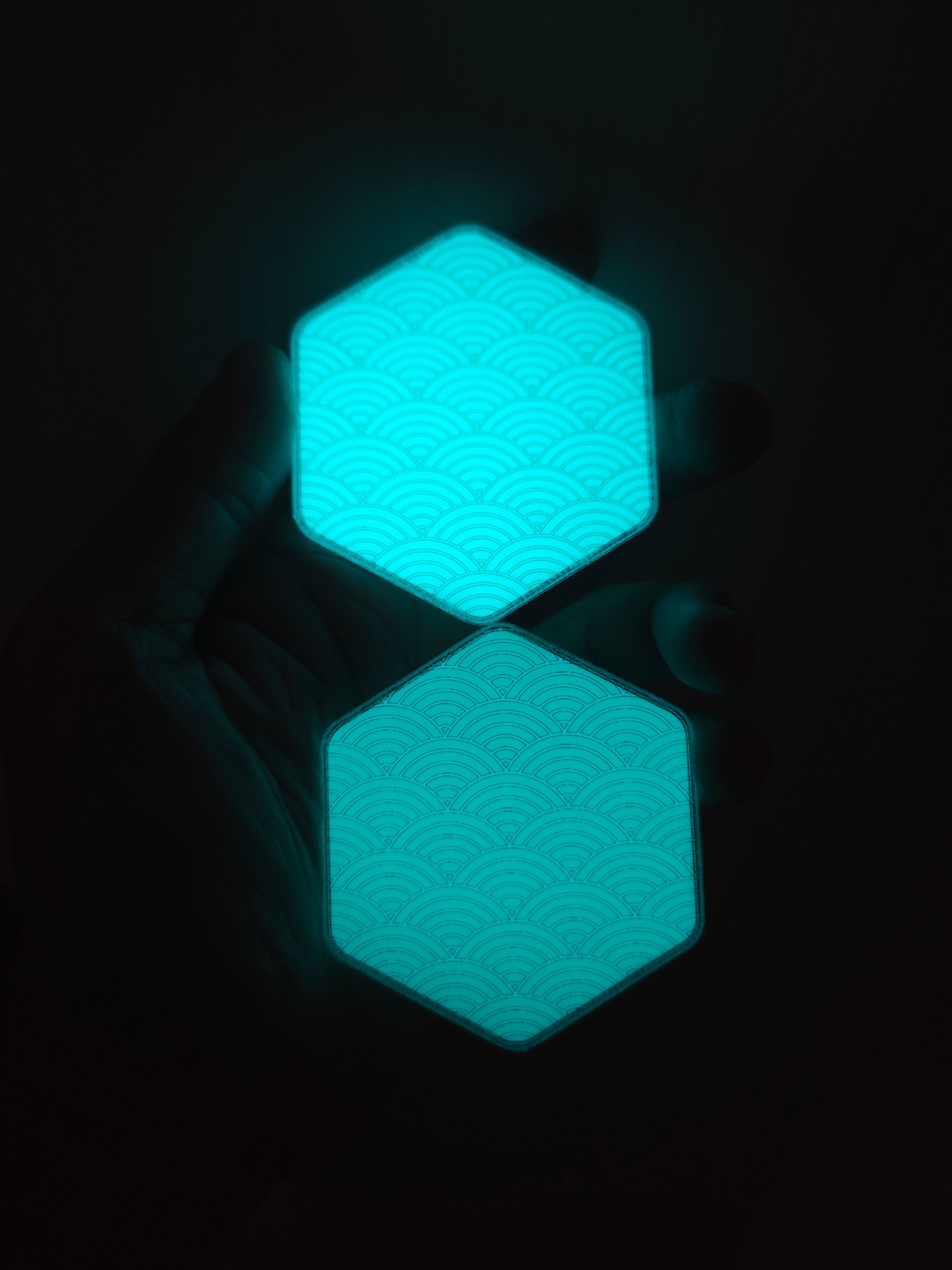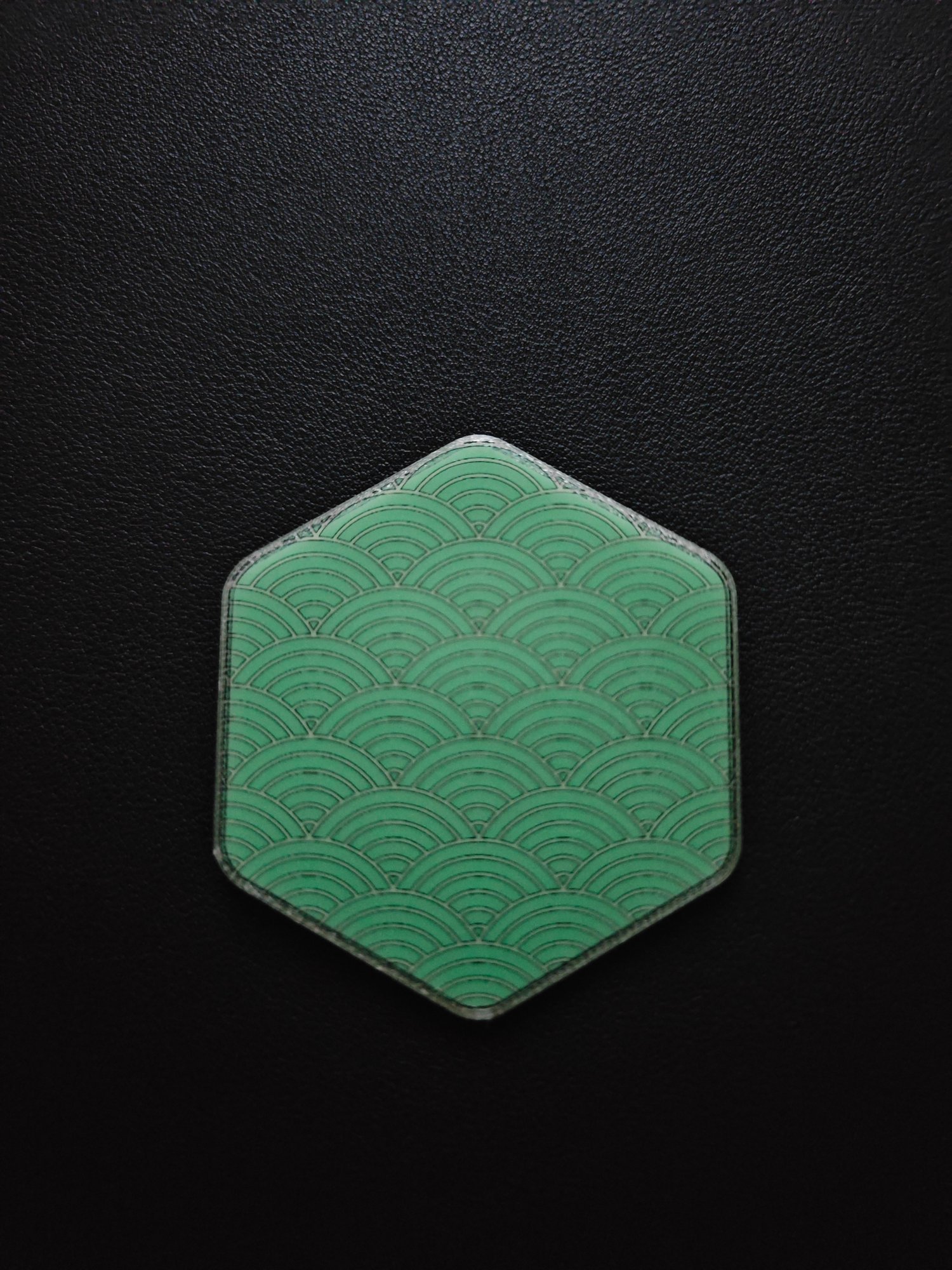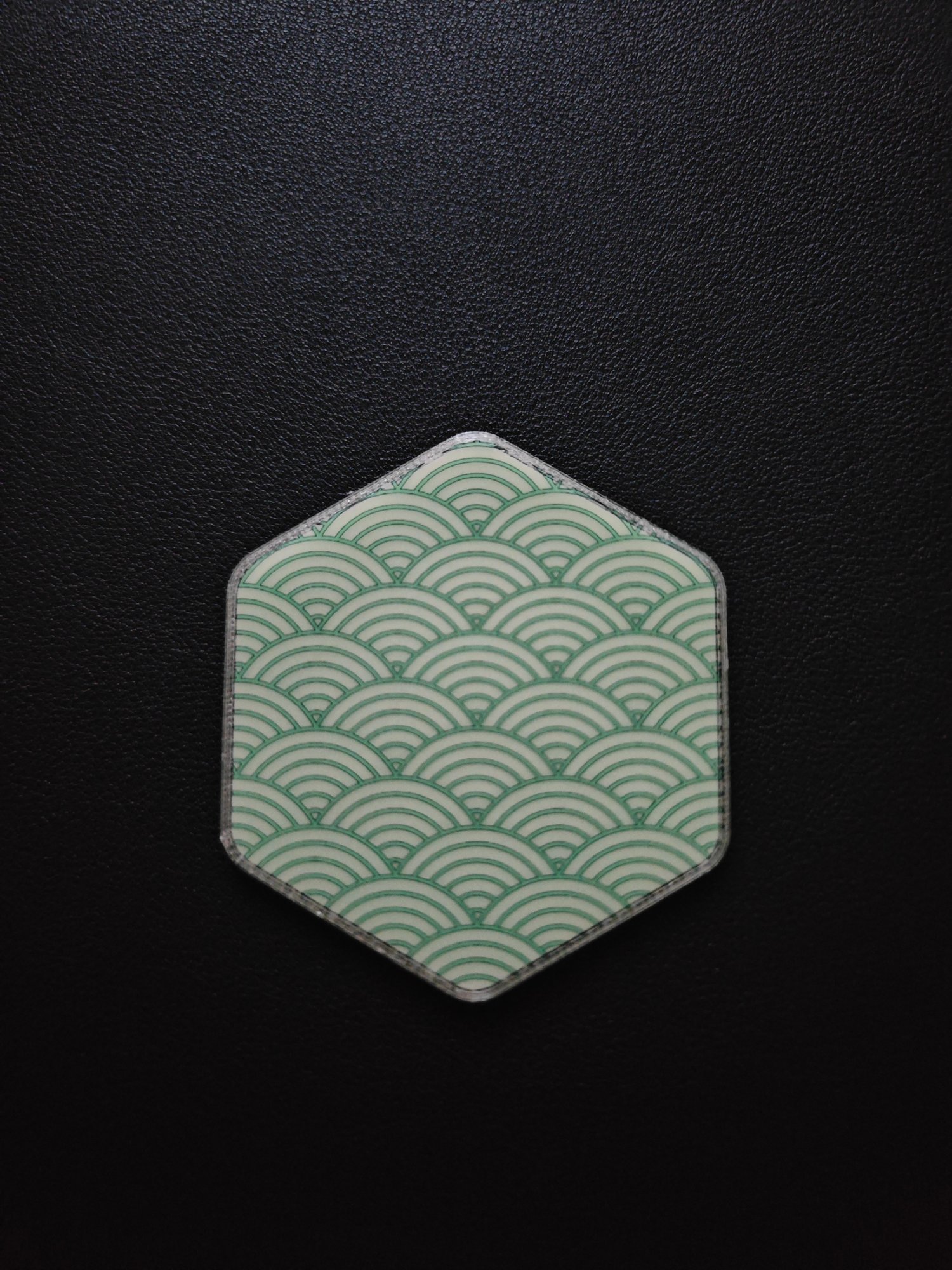 ultra glow cyan patch with matte textured Seigaiha motif pattern.