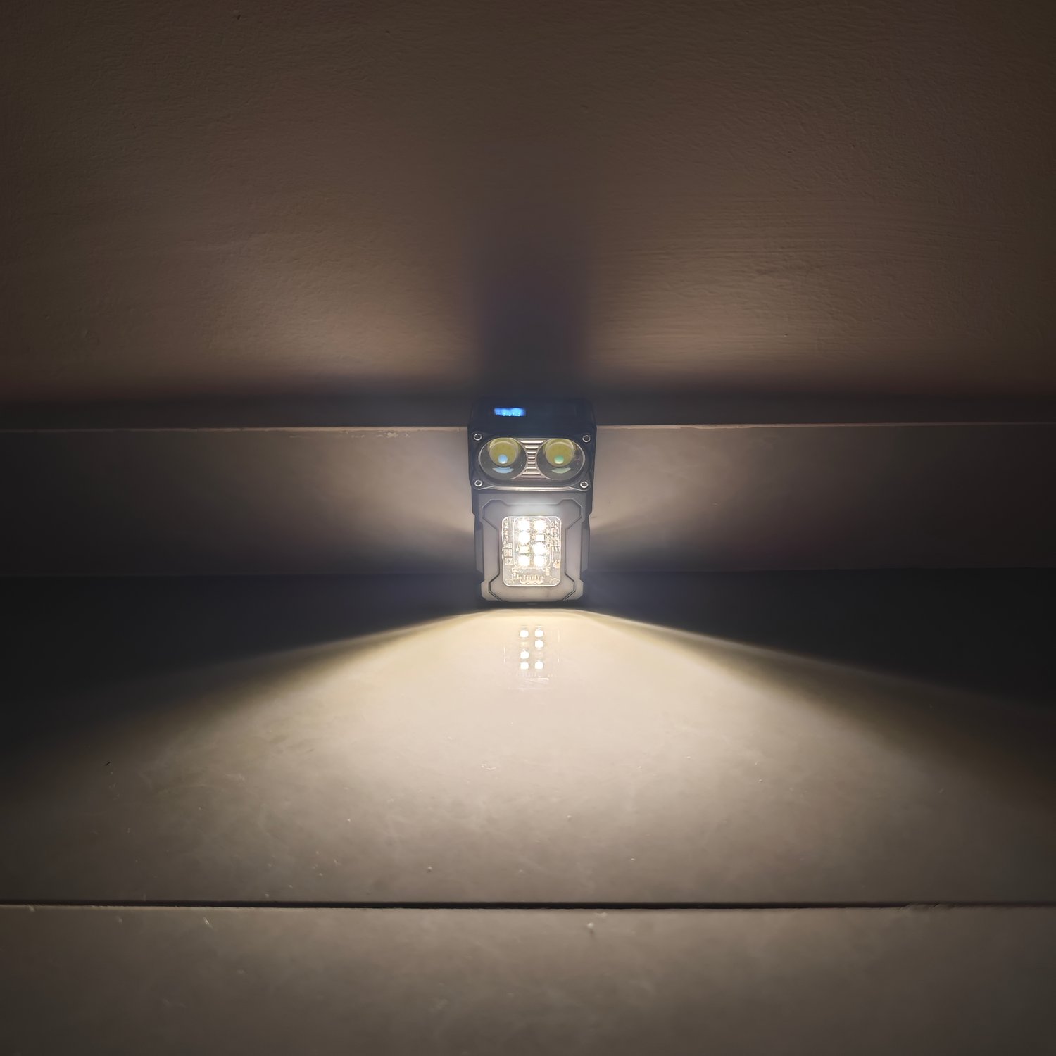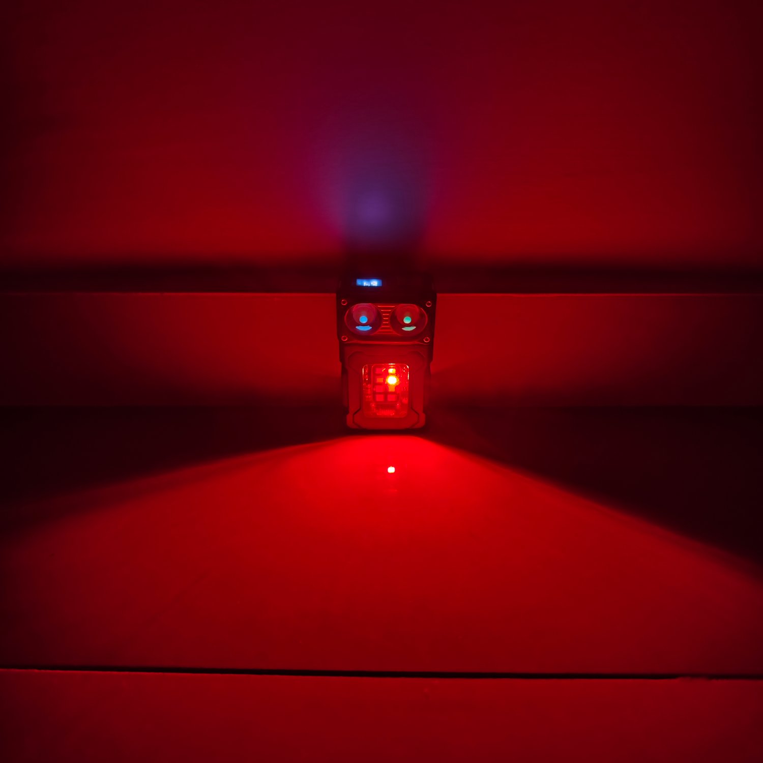 Auxiliary light : long press to turn on, constant warm light - red light - blue light - red and blue flashing.