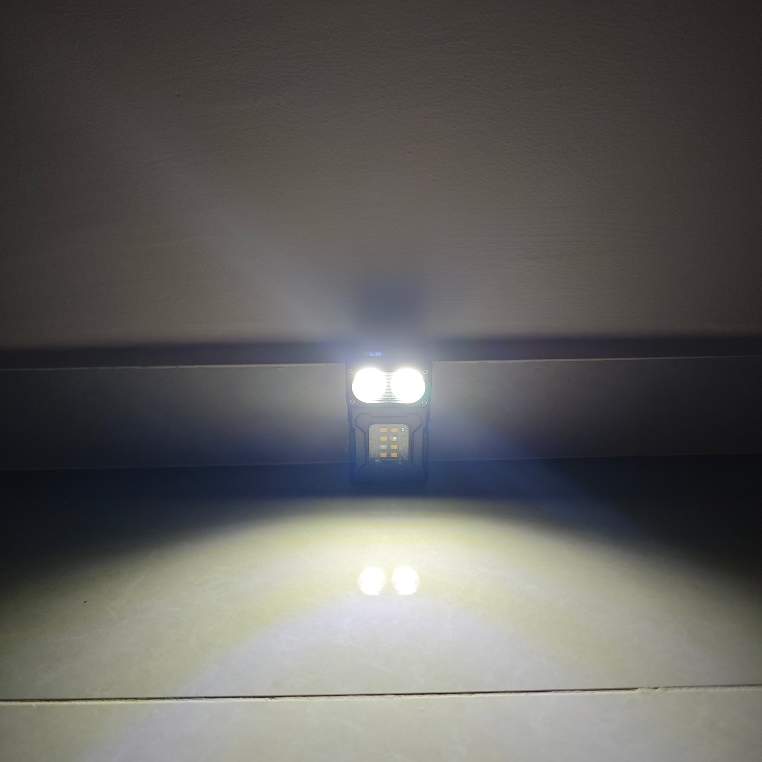 Main dual COB flood led lamp: Click once - high brightness - low brightness - flashing
